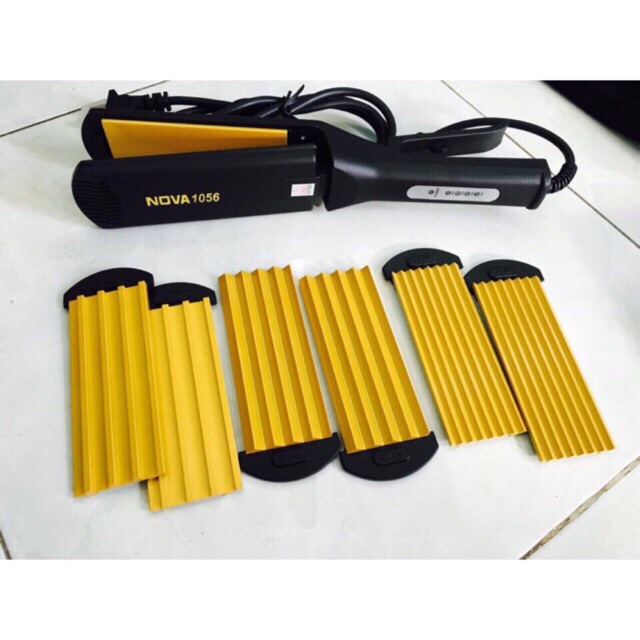 MÁY DẬP TÓC THAY BẢN 4IN1 1056 ( 1 Bản Duỗi + 3 Bản Dập Xù ) free ship